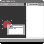 Open the label editor by clicking once on our selected ball. Let's type in "draw ball" in the first field, and "use mouse position" in the bigger field. When you're done, click outside the label editor to save. Whenever you want to cancel out of the label editor without saving, simply hit the escape key on your keyboard.