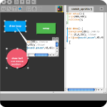 Pasting text into the drawing area will create a new text box to hold the clipboard contents. Pasting a linked shape into the code editor will paste a copy of the code linked to the copied shape.