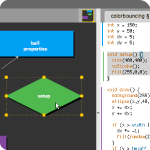 The first part of this guide is a simple and fun tutorial to demonstrate some of the ways Kaleido can help you in the coding process. The second half explains each of the different parts of the interface in further detail, and includes a comprehensive listing of the available keyboard shortcuts. You can also look at the example projects provided with the Kaleido application package by accessing them from the File → Example menu.